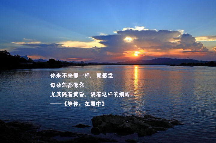 你来,或者不来,我都在这里,不离不弃,你爱或者不爱我,爱都在这里,不舍不弃,一个人默然相爱,一个人寂静欢喜,一个人用生命去抵达一座山盟,不见不散,我会等你跨过这座高山,衣袂飘飘向我走来,我会等你,走到这彼岸,不见不散。——《等你,在雨中》