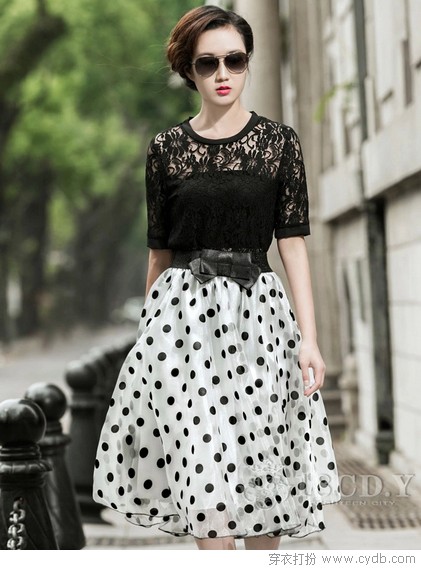 02 别道白底黑点雕琢出的大摆蓬松是在刻意卖萌,毕竟还有黑色透视短衫的轻熟坐镇,但换个角度看,黑与白清新灵动映衬透视性感,典雅浪漫相伴,品位与内涵看上去绝对不简单。