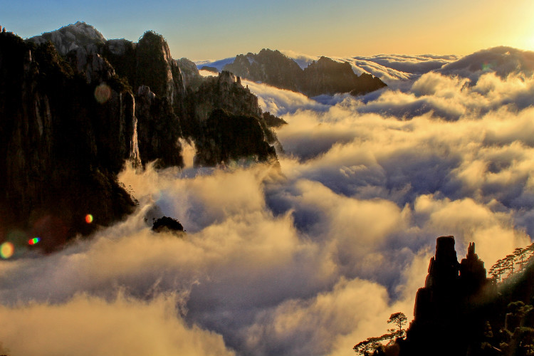 宿黄山狮子林晨起登清凉台看云铺海